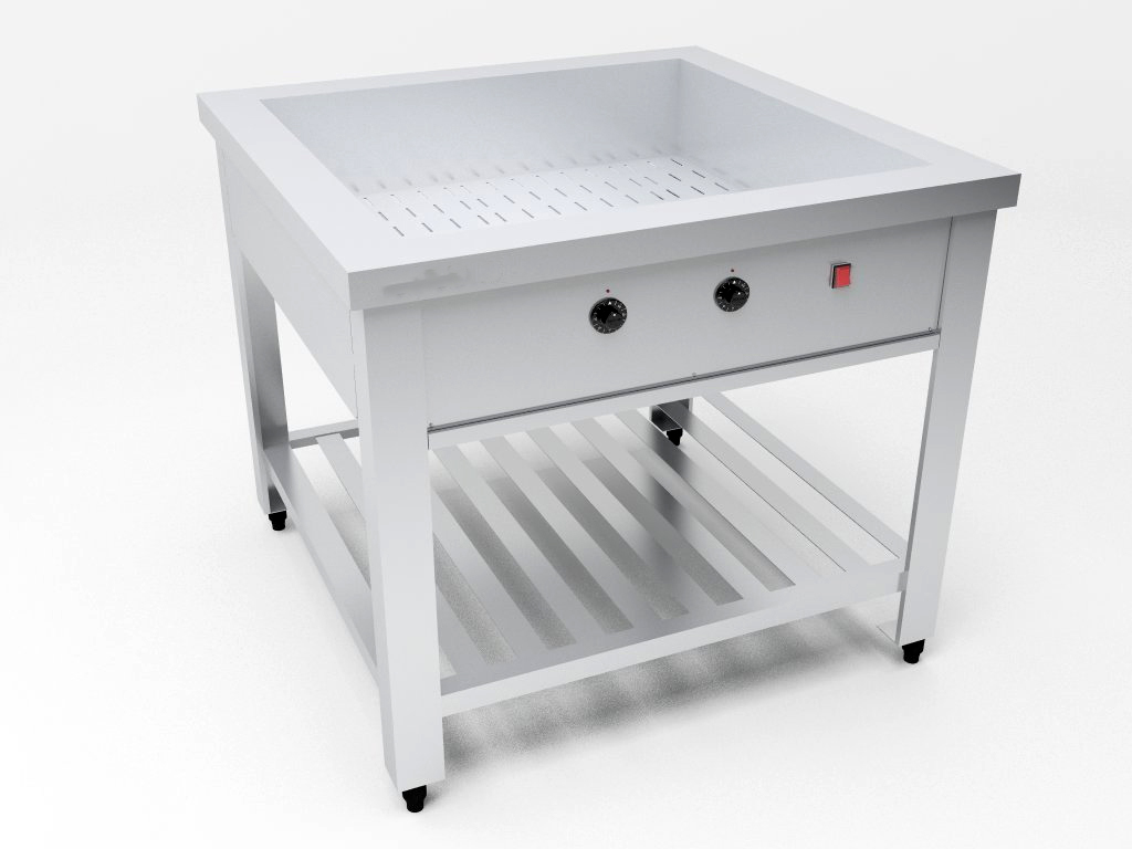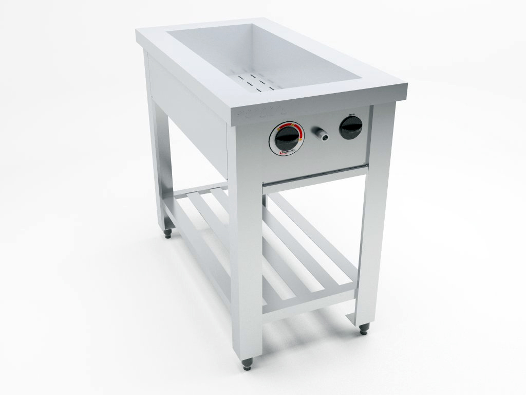 – Cuba com fundo duplo em chapa perfurada para apoio dos recipientes;